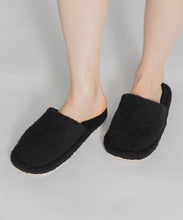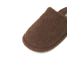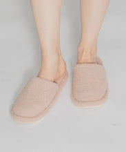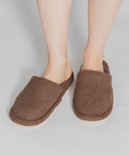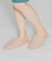 つま先までしっかりカバーしたモコモコしたシルエットのスリッパ。