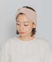 モコモコ素材とフロント部分のリボン仕様の結び目がかわいいnestwellのヘアバンド。程よい太さと伸縮性で、髪をしっかりとホールド。