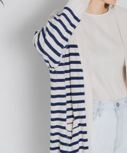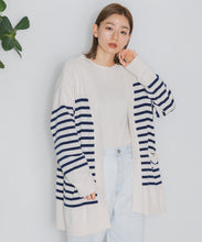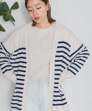 オリジナルピッチのパネルボーダーで、爽やかマリンテイストなガウンカーディガン。