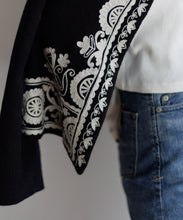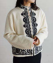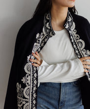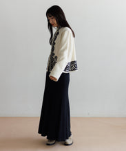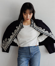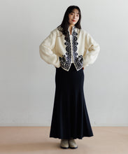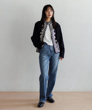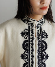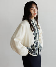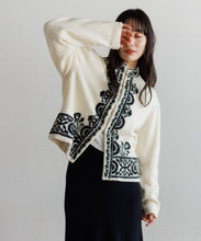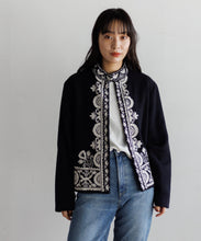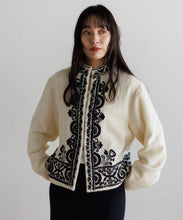 Aariと呼ばれるインドの伝統的な刺繍が目を引くスタンドカラージャケット。職人によって丁寧に作られた刺繍は、ミシンを手で巧みに操りながら文様を描き出すスキルを必要とする手法です。ウール100%のウールジャガード素材は、ウールのふんわりとした柔らかさにジャガードの陰影が加わり、軽やかでありながら、温かみのある着心地が特徴。インドならではのナチュラルな素材感と伝統技術が生み出す、上品で繊細な仕上がりのジャケットは、秋冬コーデの主役となる存在感のある一枚です。