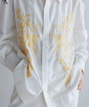 インドのウッタルプラデーシュ州・ラクノウ(ラクナウ)という町の伝統的な手刺繍を施したシャツ。美しく存在感のある刺繍が目を引き、この一枚でスタイリングに映えるアイテムです。チカン刺繍とも呼ばれ「上質な綿で刺繍された」という意味があります。400年もの長きに渡って受け継がれてきた伝統的な刺繍は、繊細な模様と立体感のある美しい仕上がり。全て女性たちにより施され、時間をかけて作られることで、一つひとつ異なる表情が魅力です。素材には、インドシルク特有の素朴な光沢感と強さ、コットンの優しさを兼ね備えたシルクコットンを使用。綿との混紡による柔らかな肌触りと、控えめなツヤ感が上品な印象を演出。ユニセックスで着用いただけます。