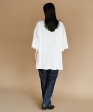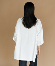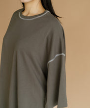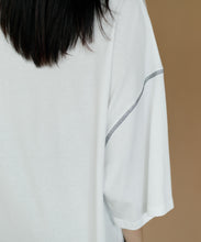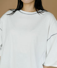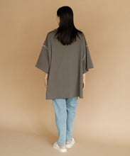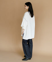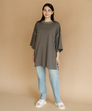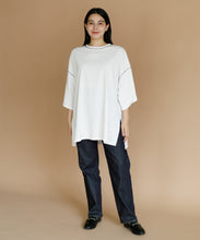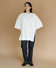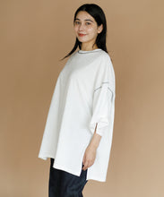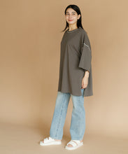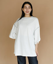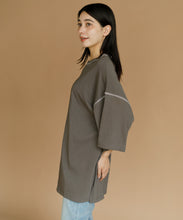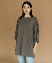 太ももまで隠れるビッグなシルエットのチュニックTシャツ。肩の落ち感とルーズなシルエットがかわいい一枚です。ステッチの配色とサイドのスリットがアクセント。ゆったりシルエットなので、身体のラインも拾わずにさりげなく体型カバーができるのも嬉しいポイント。ロングスカートでもパンツでも合わせやすく、夏のカジュアルコーデにぴったりです。