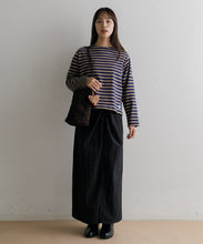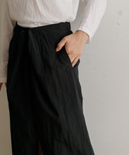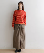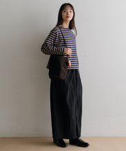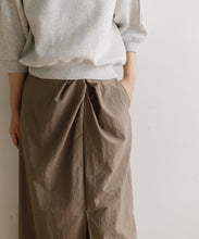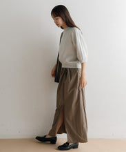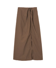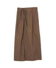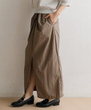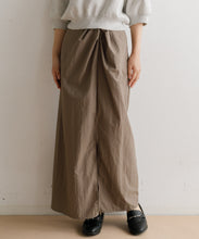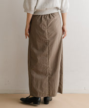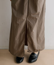 軽く多少の汚れにも強い、ナイロン素材のロングスカート。ストンとしたIラインに、ウエストの絞りがデザインポイントで、着用すると巻きスカートのように見え、下半身をスッキリと見せてくれます。ウエスト後ろ部分はゴム仕様で深めのスリットが入っているので、足捌きもよく動きやすさも◎。一枚でももちろん、レギンスと合わせても。お尻までの裏地がついていて安心して穿いていただけます。両サイドのポケットも便利。オンオフ問わず、秋・春・夏に大活躍する一枚です。