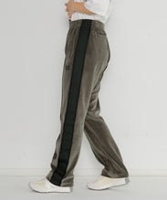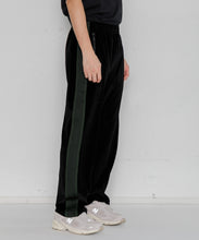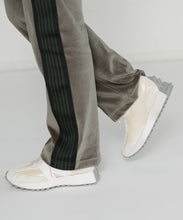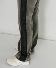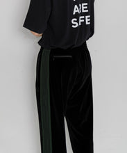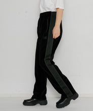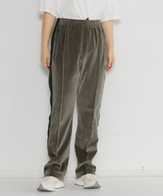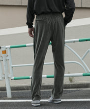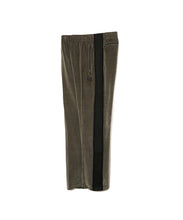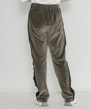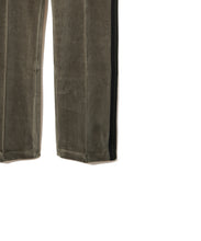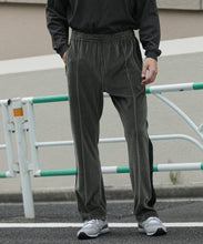 定番のポリエステルジャージー素材と並び人気の高い、ベロア素材を使用したトラックシリーズが24年秋冬の新色で登場。ソフトな肌触りと美しい艶感が魅力的なアイテムです。彩度を抑えたオリーブ、スタイリッシュなブラックです。トラックパンツは細身のナローシルエットです。