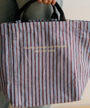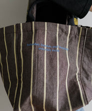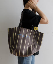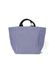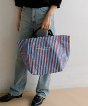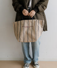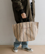 リサイクル糸で織ったオリジナルストライプ柄の優しい風合いが魅力のトートバッグ。手持ちでも肩掛けでも使える2種類の持ち手がついており、気分や用途によって持ち方を変えられます。ストライプ柄に配した配色の刺繍もかわいいアクセントに。内側には小物の収納に便利なポケット付き。マチの大きなサイズなのでデイリー使いからレジャーまで使えて、秋冬のコーデにぴったりのアイテムです。