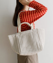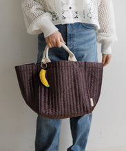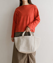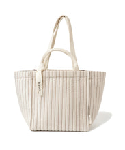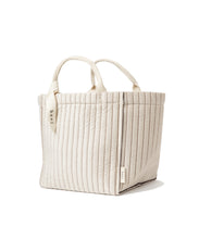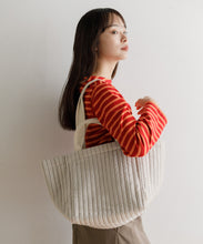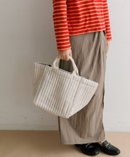 肌さわりの良いベロア生地に糸色をきかせたキルティングがポイントのトートバッグ。ハンドルが2つあるため、トートバッグとしてもショルダーバッグとしてもご使用いただけます。裏地にはオリジナルストライプ生地を使用。内側には小物の収納に便利なポケット付き。マチの大きなサイズなのでデイリー使いからレジャーまで使えて、秋冬のコーデにぴったりのアイテムです。