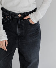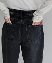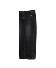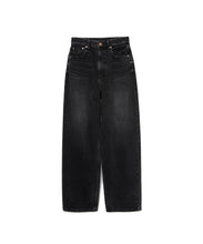 腰を落として穿いているようなダボっとした雰囲気は残しつつも、程よいフィット感のウエストをキープ。きちんと足が長く見えてくれる様な股位置と太さがこだわりのポイントです。少し長めの丈なので、スニーカーにワンクッションさせたり、ローヒールなどに合わせてトレンド感あるスタイリングにしてみるのもおすすめです。経糸、緯糸双方にリターンコットン(紡績工程で発生する未利用綿を回収して再利用した糸)を採用した、独特のアタリ・シボ感・風合いが特徴の綿100%デニム地使用で、見た目のわりに、軽量で柔らかい素材感。