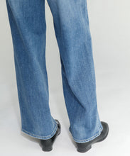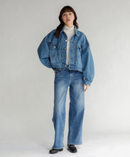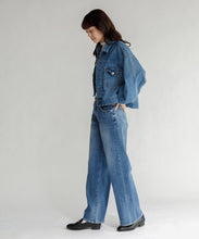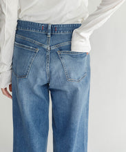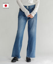 今までになかったワイドレッグ、ヒップラインはしっかりとカバー出来るようにホールド感をアップ!素材はカイハラの3者混ハイパワーストレッチデニム地採用。経糸にアメリカ産スーピマコットンを使用しており、長短2種類のスラブ糸を組み合わせてランダムな凹凸を付けることで、見た目のビンテージ感とナチュラルな素材感がありつつ、超長綿による耐久性UPと滑らかな肌触りが特徴。緯糸には芯に合繊を入れて綿でカバーリングした糸を使用しており、戻りのしっかりとした弾力性が特徴で、従来のポリウレタンストレッチから大幅に伸縮性がUPしました。美脚感と穿き心地をとことん追求した1本です。
