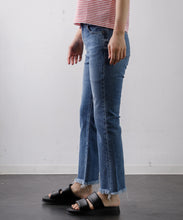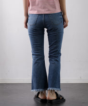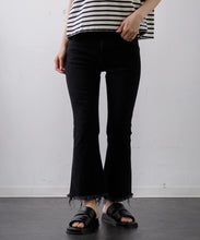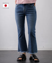 RED CARD TOKYOから、履きやすさと美脚を意識したクロップドのフレアデニム「Love」が登場。 膝の位置にこだわりフレア部分を長く見せることで、脚長効果が期待できるシルエットです。 大人っぽくモードな印象のデザインで、 フラットシューズやサンダルはもちろん、ブーツにも相性抜群。カイハラのストレッチデニムを採用し、デニムらしいラフ感のある、シボ感強めの一本です。