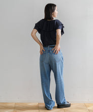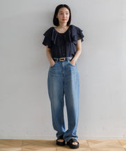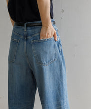 絶妙な太さできれいな落ち感が魅力のストレートデニム「Dakota(ダコタ)」。腰を落として穿いているようなダボっとした雰囲気は残しつつも、程よいフィット感のウエストをキープ。きちんと足が長く見えてくれる様な股位置と太さがこだわりのポイントです。少し長めの丈なので、スニーカーにワンクッションさせたり、ローヒールなどに合わせてトレンド感あるスタイリングにしてみるのもおすすめです。経糸、緯糸双方にリターンコットン(紡績工程で発生する未利用綿を回収して再利用した糸)を採用した、独特のアタリ・シボ感・風合いの素材を使用し、見た目のわりに軽量で柔らかい素材感です。