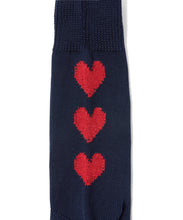 ROSTER SOXで人気の3ハート柄が復活。太糸で編み上げた「Xシリーズ」は、肉厚で立体的。ラメの♡マークがポイントです。履き口のゴムはゆるめで履きやすさも◎。ギフトにもおすすめのアイテムです。