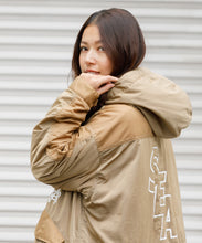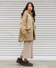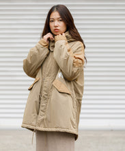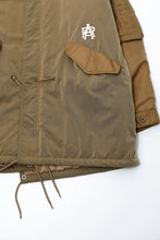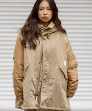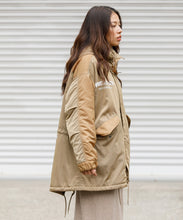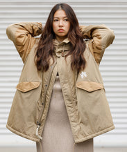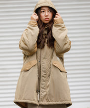 ミニマルデザインのM65 フィッシュテイルコートと、襟が特徴的なM51フィールドジャケットを融合させたショート丈ジャケットは、襟を立てたり寝かせたり、フードを閉じたり開いたりする事で様々な表情に。表地にはMA-1などのフライトジャケットに使われるナイロンツイル素材とイタリアLIMONTA社の独特な光沢感を持つ高密度ナイロン素材をパーツによってミックスしています。ステッチ糸にはあえて太い番手を使用してパッカリングを出すような細かいこだわりも。キルティングライナーの中綿にはマイクロファイバーで作られ「人工のダウン」と言われている 機能中綿素材の PRIMALOFT(プリマロフト)を使用しており優れた保温性を発揮します。この冬ずっと持っていたい、機能性もデザイン性も極めた一枚です。