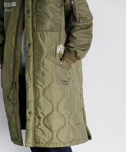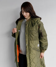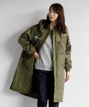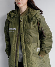 アメリカ海軍のCWU-9Pライナージャケットを元に軽量でオーバーサイズ気味にアレンジしたロングジャケット。フードはボタンで着脱可能で、気分によって表情を変えられます。表地にはMA-1などのフライトジャケットに使われるナイロンツイル素材とポリエステルのリップストップ素材を、パーツによって使い分けミックスしています。この冬ずっと持っていたい、機能性もデザイン性も極めた一枚です。