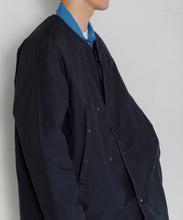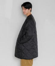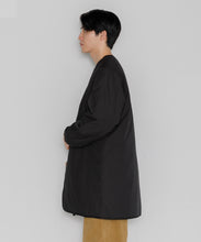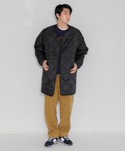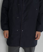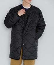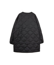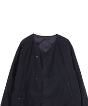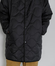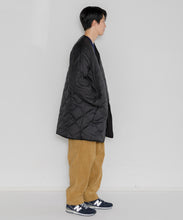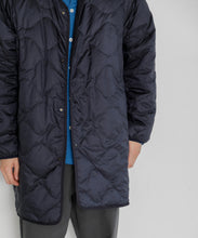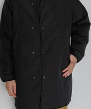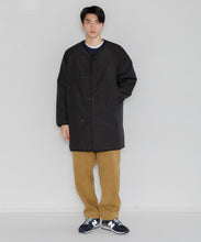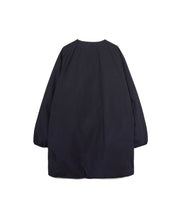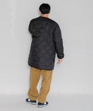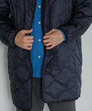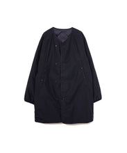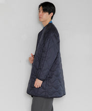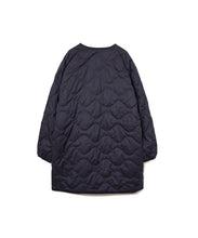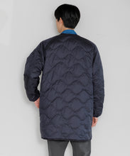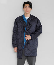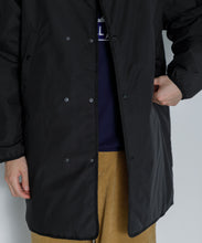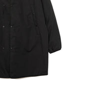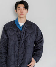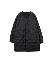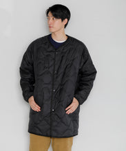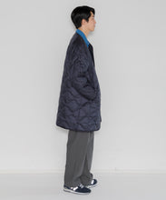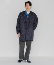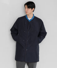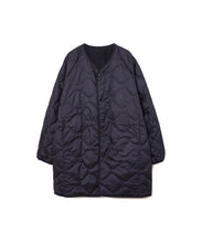 ミリタリーライナーをデザインベースにしたリバーシブル仕様のダウンコート。フロントのアジャストボタンでフォルムを絞ることも可能です。表側はフラット、裏側にはキルトステッチが配されています。デイリーに使いやすい一着です。表側はポリエステルとコットンをミックスした糸を高密度に織り上げた軽量のウェザークロス、裏側は強度の高いポリエステルリップストップ、中わたは体が発する遠赤外線を輻射して保温効果を高める高機能な光電子ダウン®を使用しています。