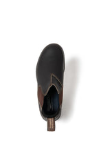 履き口の前後には、ブランドネーム入りのプルストラップが付いており、指を通せば、片手でも簡単に着脱できます。ブランドストーンのブーツを象徴するアイコンとして、コーディネートのアクセントにも。