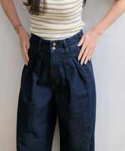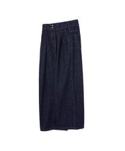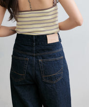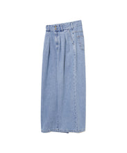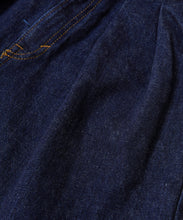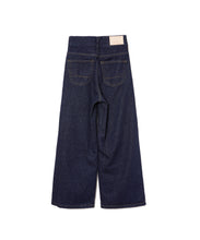 ハイウエストで腰位置高め、太幅のベルトがコルセットのようにウエストをマークしするデニムパンツ。ダブルタックでボリュームを出し、気になる腰回りをカモフラージュ。スソにかけて落ちるシルエットは太すぎず、すっきりキレイに着こなせるアイテム。生地は自社工場から出た裁断くずや、お客様から回収したデニムを利用し再び生地にしたリサイクルコットンデニムCOREデニムを使用。穿きこむごとに味わいが増し、経年変化を楽しめる1本です。