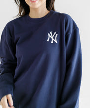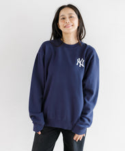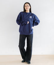 USAコットン100%素材を使用したオーバーサイズシルエットのクルースウェット。フロント胸元にはニューヨーク・ヤンキースのロゴ、背面にはSPORTY&RICHのロゴをプリント。どんなボトムスにも合わせやすく、やや薄手の裏起毛素材なので、秋・冬・春とロングシーズン活躍します。ユニセックスで着用いただけます。