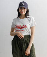 アメリカの州名とキャッチフレーズを、どこかで見たことあるようなロゴで表現した遊び心のある一枚。やや薄手のとろみのある素材感で、ボトムスにインしたり、上着を羽織ってもごわつかず使いやすさも◎。あらゆるボトムスにマッチするTシャツです。ユニセックスでお使いいただけます。
