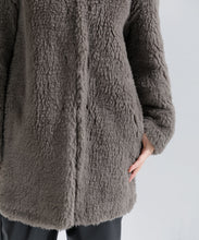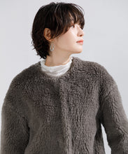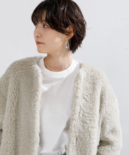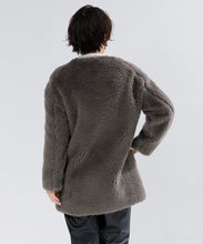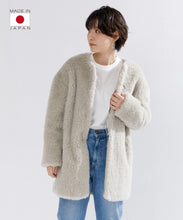 生地搾取を目的とした動物の殺処分をしないというエシカルな素材として国内外のメゾンブランドから高野口のクラフトファーに注目が集まっています。素材は、何十年も前から職人さんが大切にメンテナンスをしながら使っている貴重な編み機を使用。軽さと暖かさに優れ、この編み機ならではの自然なストレッチ性が特長です。原料のウールは、 南米の自然な大地で育てたバルキー性の高いスポンディッシュで非常に軽い羊毛を使用。地球にも人にも 優しく、暖かく包み込んでくれる1枚です。