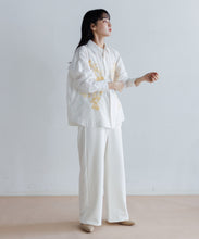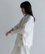 インドのウッタルプラデーシュ州・ラクノウ(ラクナウ)という町の伝統的な手刺繍を施したシャツ。美しく存在感のある刺繍が目を引き、この一枚でスタイリングに映えるアイテムです。チカン刺繍とも呼ばれ「上質な綿で刺繍された」という意味があります。400年もの長きに渡って受け継がれてきた伝統的な刺繍は、繊細な模様と立体感のある美しい仕上がり。全て女性たちにより施され、時間をかけて作られることで、一つひとつ異なる表情が魅力です。素材には、インドシルク特有の素朴な光沢感と強さ、コットンの優しさを兼ね備えたシルクコットンを使用。綿との混紡による柔らかな肌触りと、控えめなツヤ感が上品な印象を演出。ユニセックスで着用いただけます。