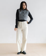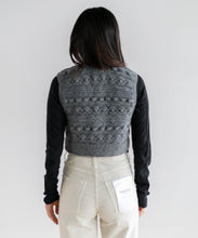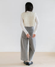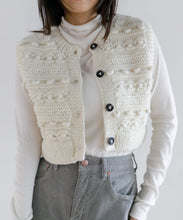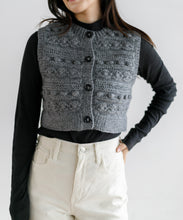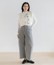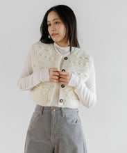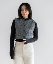 立体感のある編み柄を組み合わせた、クロップド丈のハンドニットベスト。クロップド丈なので、スタイルアップ効果も期待できます。大きめのボタンが程よいアクセントになっており、ボタンを開けて羽織りしても活躍する季節の変わり目に重宝するアイテムです。ネパールの職人により1点1点手編みされている、温もりあふれるハンドニット。ボリューム感のあるパンツやスカートとの相性抜群で、ロンTやハイネックのものと合わせてカジュアルに着るのもよし、ワンピースに重ねても可愛く着ていただけます。