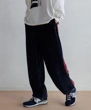 高級感漂うベロア素材を使用したスウェットパンツ。サイドラインの入ったパンツはカジュアルな印象ながらも、柔らかな肌触りと光沢のあるベロア素材でクラシックでレトロな雰囲気を感じさせる一本です。