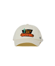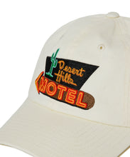 ウォッシュドコットンを使用したキャップ。ラスベガスにあるホテルDESERT HILLS MOTELをモチーフにしたデザイン。バックストラップでサイズ調整可能です。ユニセックスでお使いいただけます。