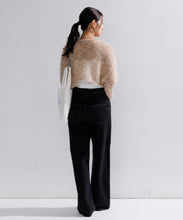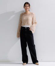 バストの少し下くらいまでの超ショート丈のニットプルオーバー。ロンTやキャミソール等と合わせれば、一気にオシャレなスタイルが完成します。こなれ感が出る肩の落ち具合も◎。意外にいろんなアイテムと合わせやすく、スカートでもパンツでもマッチします。ラメ糸を使用したニットながら、着心地はしなやかでチクチクしづらいのも嬉しいポイント。ギラギラしすぎない上品なラメで、大人でも着やすい一枚です。