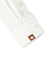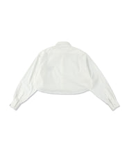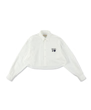 ショート丈のクロップドシャツ。上半身がコンパクトにまとまり、スタイルアップ効果抜群の一枚です。一枚で着ても、インナーにタンクトップを合わせても。左胸元にロゴ刺繍、左袖にスペードのアクセントを配しています。