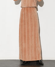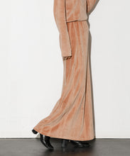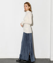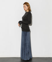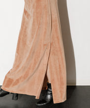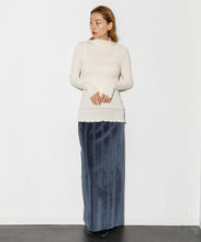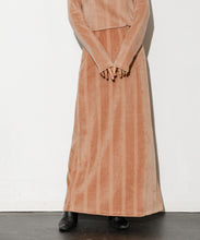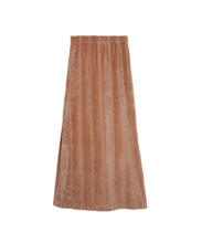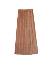 ラグジュアリー感溢れるベロア素材のロングスカート。女らしさがUPする1枚です。ウエストはゴムで楽な履き心地。深めのスリットが入っているので、レギンスと合わせていただくのもおすすめです。