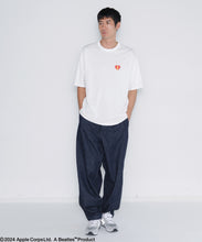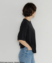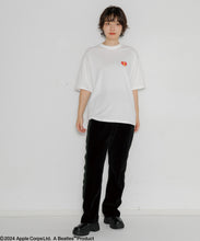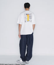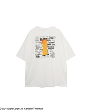 ビートルズのシングルヒット曲をまとめたベストアルバム『ザ・ビートルズ1』をモチーフとしたTシャツ。バックにはアルバムの収録曲のタイトルがプリントされています。 一枚でも、カーディガン等のインナーとしても、合わせやすいアイテムです。レーヨン混の天竺素材を使用しており、ややオーバーサイズなので、着用するとこなれ感の出るシルエット。ユニセックスで着用いただけます。