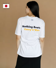 「Nothing Beats curry'n Rice」(カレーライスしか勝たん)というユーモアあふれるメッセージを両面にプリントした一枚。ソフトで着心地の良い生地感です。ユニセックスで着用いただけます。