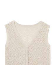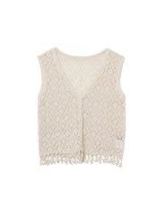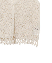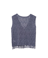 涼しげな透かし編みが夏らしいニットベスト。裾部分のフリンジがアクセントとなり、コーディネートを引き立てます。やや短めの着丈で、スタイルアップ効果も◎。軽い着心地で、真夏でもストレスなく着ていただけます。パンツでもスカートでも、普段のコーデに一枚羽織るだけで、一気にトレンド感のある着こなしになるアイテムです。