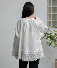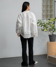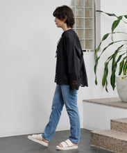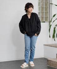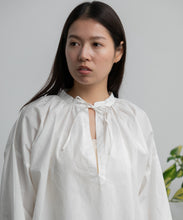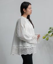 【首元、袖、裾に一工夫。ふんわりかわいい綿素材ブラウス】