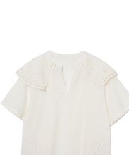 【夏に気持ちいい綿素材。繊細なカットワーク&大きめ襟がかわいいブラウス】