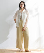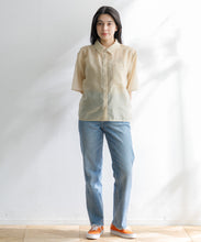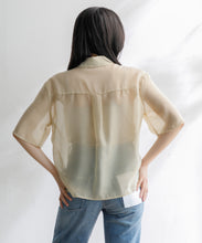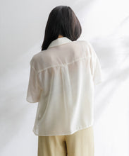 夏に便利なシアー素材のカラーシャツ。透け感があるので、初夏〜初秋の羽織に最適です。肩に落ち感が出るようなサイズ設定で、羽織るとこなれ感が出る一枚です。夏の日差しよけや冷房対策にも◎。一枚持っていると便利なアイテムです。