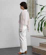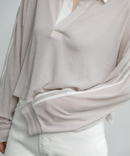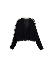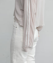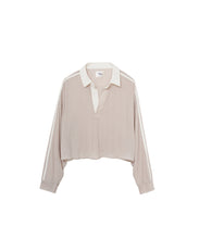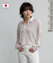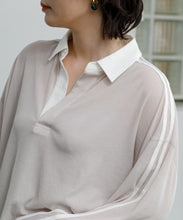上品なシアー素材にスポーティーな袖のラインの組み合わせが新鮮なスキッパーシャツ。首をほっそりとキレイに見せてくれる襟元もデザインポイントで、スポーティーながらもきちんと感も出せて大人のカジュアルスタイルにぴったりな一枚です。スカートでもパンツでも合わせやすいアイテムです。