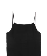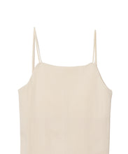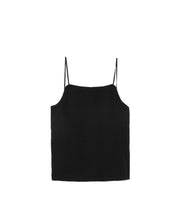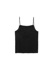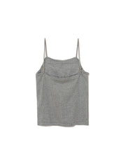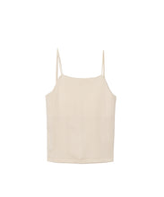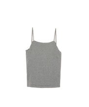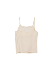 どんなトップスにも合わせやすいカップ付きキャミソール。スッキリとした印象で、1枚でも重ね着でも重宝するアイテムです。後の肩紐を脇寄りにつける事で、後あきデザインのTOPS と合わせても紐が見えにくくなっています。カップは取り外し可能です。