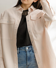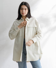 リヨセル混のデニム素材を使用し、美しい落ち感とやわらかな肌ざわりを実現した一着。オーバーサイズながらもラフすぎず、大人のこなれた雰囲気を演出します。一枚でも羽織りでも着こなせる万能デザイン。裾は体に沿いやすいラウンドカットで、やわらかなカーブを描くアーモンドシルエットが特徴です。