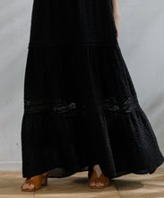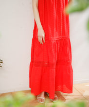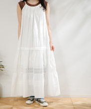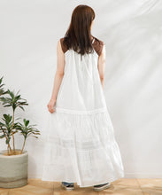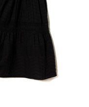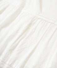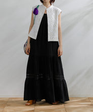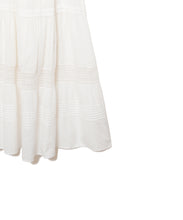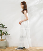 職人の技術が光る、1枚1枚丁寧に時間をかけてレースを縫い付けて作られた美しい生地を使用したワンピース。薄手のコットンドビー素材がナチュラルな質感をもたらし、デイリーに着こなしやすく、Tシャツと合わせたカジュアルなスタイルから、アップした着こなしまで様々なスタイリングが楽しめる1着です。裾の切り替えにより、たっぷりとしたギャザーが風をはらみ、ふわっと軽やかな雰囲気に。裏地が付いていて透けにくい仕上がりになっています。