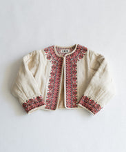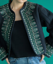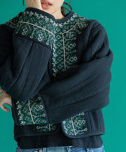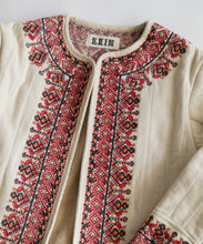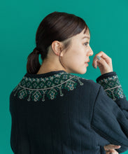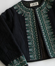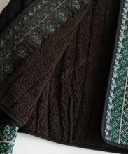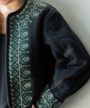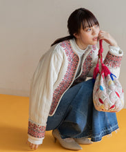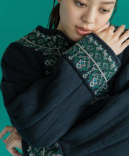 伝統的な機織機で丁寧に織り上げた「マティ」素材を使用し、裏面はボアのキルティング仕立てになっています。繊細な刺繍がアクセントとなり、暖かい冬にはこれ1枚にマフラーを合わせるだけで十分なコーデが完成します。ショート丈なので、ワンピースやスカートとの相性も抜群です。