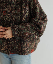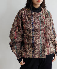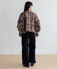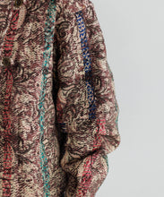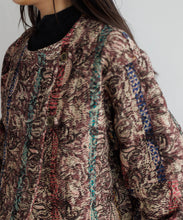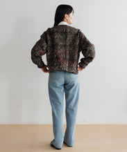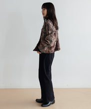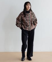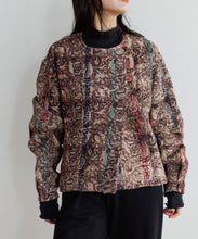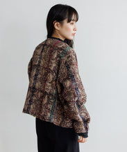 深みのある自然な色合いが特徴のキルト素材を使用したジャケット。藍やターメリックなどの植物由来の染料を使った「ベジタブルプリント」という技法は、天然染料による深みのある発色と、手作業ならではの繊細な仕上がりが特徴です。生地には、「Kantha(カンタ)」と呼ばれる、使い古された古布を何枚も重ね、刺し子を施した布が使用されています。オールハンドメイドによるあたたかみと他にはない素材は存在感たっぷり。長すぎず短すぎない絶妙な着丈で、パンツでもスカートでも合わせやすく、秋冬のコーディネートの主役となる一枚です。