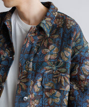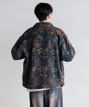深みのある自然な色合いが特徴のキルト素材を使用したCPOジャケット。藍やターメリックなどの植物由来の染料を使った「ベジタブルプリント」という技法は、天然染料による深みのある発色と、手作業ならではの繊細な仕上がりが特徴です。生地には、「Kantha(カンタ)」と呼ばれる、使い古された古布を何枚も重ね、刺し子を施した布が使用されています。オールハンドメイドによるあたたかみと存在感たっぷりの素材を、Gジャンデザインに落とし込みユニセックスサイズに仕上げた、特別な一枚です。