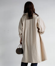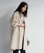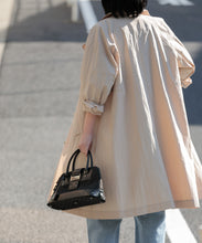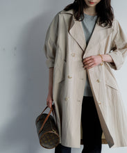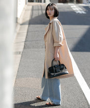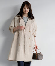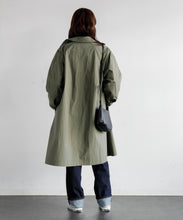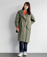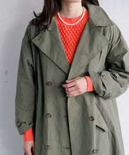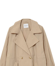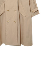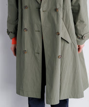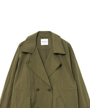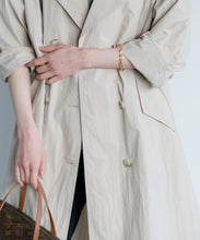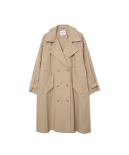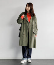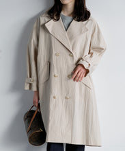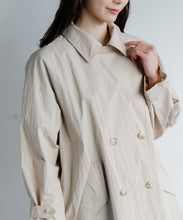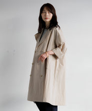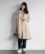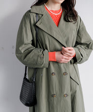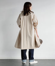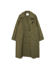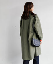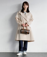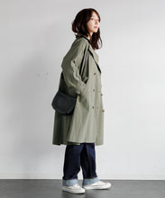 羽織るだけでこなれ感の出るトレンチコート。ほどよいハリがあり、軽く春コートにぴったりの素材で、ナイロンのしなやかさや取り扱いのしやすさはそのままに、天然素材のようなナチュラルな風合いと印象を持った薄手のコットンナイロン素材を使用しています。ゆったりとしたサイズ感で、ウエストを絞れるドローコードが内側にあり、絞ってシルエットやフィット感を調整できるのも嬉しいポイント。ポケットはフラップディティールでミリタリー要素もプラス。きれいめなデザインでありながら、ほどよくカジュアルな雰囲気もある一枚です。
