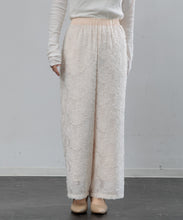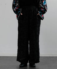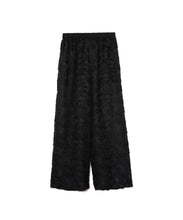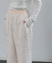 ジャカード織がキレイで立体的な素材感のワイドパンツ。しなやかな素材に、ウエストはオールゴム仕様なので、履き心地・動きやすさ抜群です。ブラウスなどを合わせて、オフィスでも使えるキレイめスタイルに、ニットを合わせてカジュアルに、意外にいろいろなトップスを合わせやすい一本です。裏地付きです。