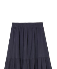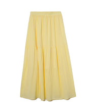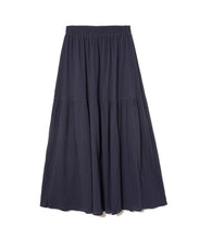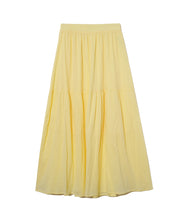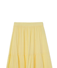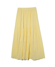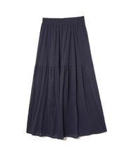 ふわっと軽い素材のティアードスカートです。春〜夏にかけて使える着回し抜群のアイテム。トップスもカジュアルなものから綺麗めなものまで合わせて着ていただけます。定番のネイビーとコーデを華やかにしてくれるイエローの2色展開。ウエストはゴムになっており、裏地つきなので安心して着用いただけます。