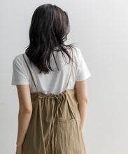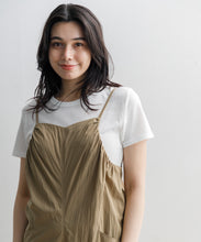 後ろの紐で、肩紐裾の丈感を自分好みに調節できるサロペット。シワになりづらく洗濯してもすぐ乾く素材なので、夏のレジャーや旅行にも◎。サイドと後ろにポケットも付いているのも便利です。胸元が空きすぎていないので、かがんでもインナーが見えづらく、かわいさと機能性を兼ね備えた大活躍アイテム。合わせるインナー次第でロングシーズン使える1枚です。
