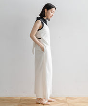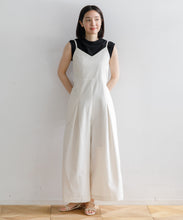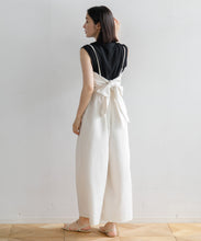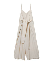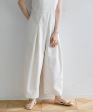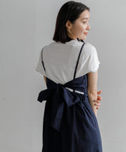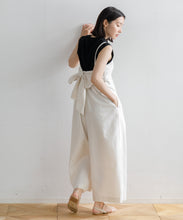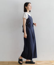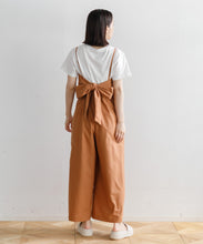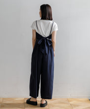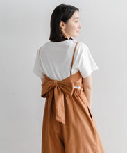 麻混の生地が夏にぴったりのサロペットです。太めの紐がついているので、後ろで結ぶと大人かわいいシルエットに。ゆったりしたサイズ感で、ウエストの後ろ部分がゴムになっており、肩紐の調整もできるのでFREEサイズでも安心なのが嬉しいポイント。インナーはTシャツはもちろん、ブラウスを合わせてもリボンとマッチしておすすめです。