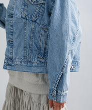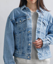 リメイクしたような切り替えディテールがポイントのデニムジャケット「THE REMAKE JACKET(ザ リメイクジャケット)」。ボタンを留める箇所によってAライン型/背中を抜いたテーパード型と、シルエットが変わります。デニムらしいオーセンティックな表情のノンストレッチ素材を採用。茶綿を使用していないのでくすみのないきれいなインディゴカラーが特徴です。
