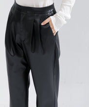 upper hights DAYのエコレザーテーパードパンツ「Rosie(ロージー)」。合皮とは思えない、滑らかなタッチのイタリア大手生地メーカーが監修した合皮素材採用。2タック入りのすっきりとしたウエストラインとテーパードシルエットが体型問わず着こなしやすく、モードな雰囲気に仕上がる一本です。両サイドポケット付き。